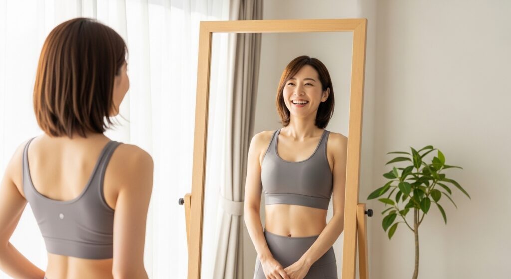 朝、着替えるとき。お風呂の前。ふと映った自分の横顔。 「またか」と小さくため息が出た経験はありませんか。 体重は大きく変わっていないのに、どこか締まらない。 頑張っているはずなのに、鏡を見るたびに心が重くなる——。 その感覚は、決してあなたの甘えでも怠けでもありません。