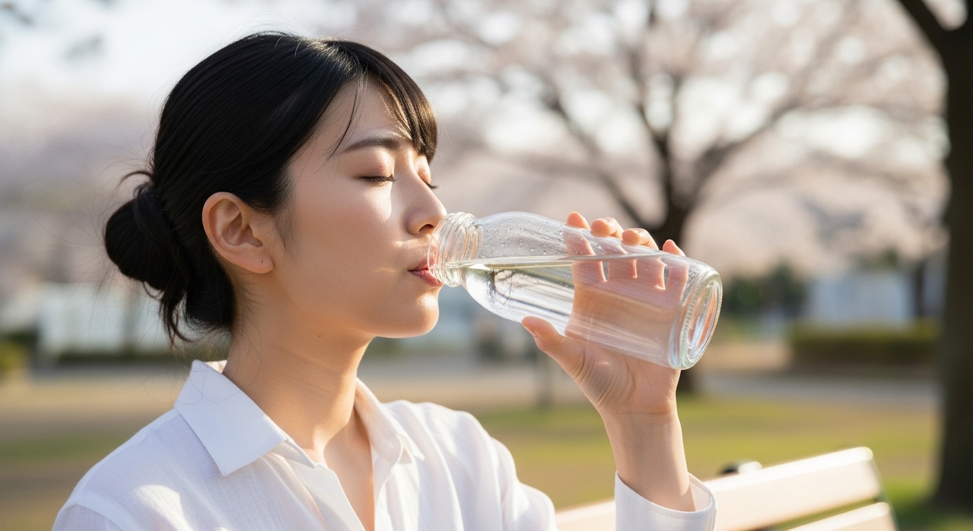 女性は汗をかきにくいこともあり、水分不足になりやすい傾向があります。 水分不足は血流低下や疲労感につながるため、1日1.2〜1.5リットルの水分補給を意識しましょう。 運動前後や入浴後、外出時にもこまめに水分を摂ることが大切です。