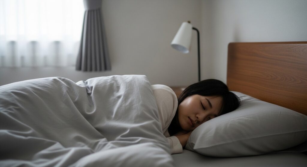 - 軽いストレッチや深呼吸でリラックス:肩や腰を軽くほぐすことで入眠がスムーズに